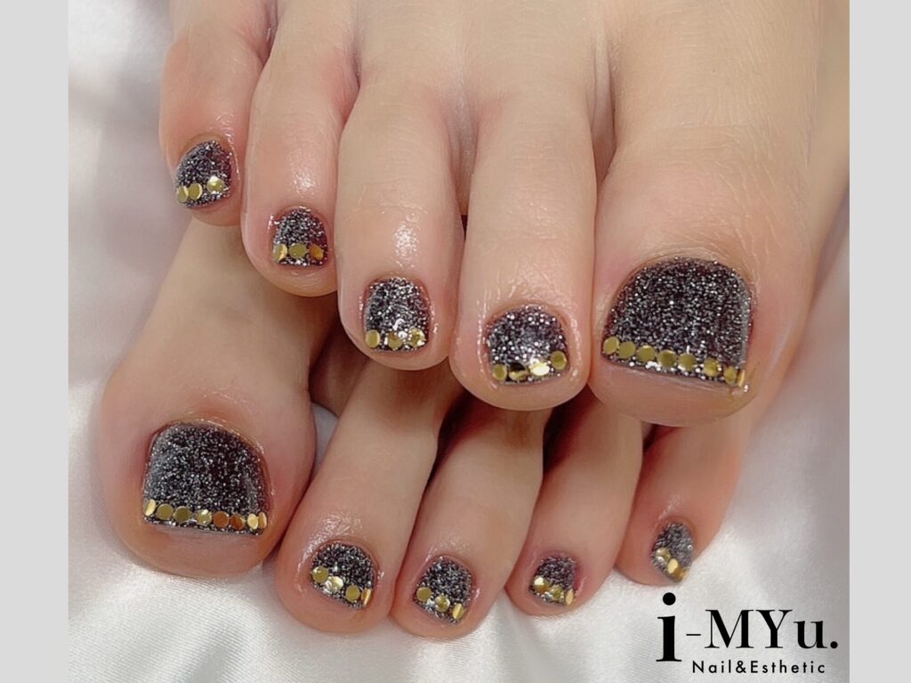 シンプルながらも上品に仕上がるワンカラーや、キラキラと輝くラメグラデーションから選べるフットネイル。